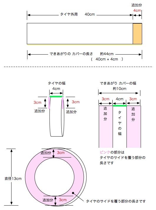 一輪車タイヤカバーの作り方(サイズ例)